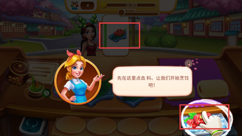 2、查看客人需求,跟随指引点击下方食材,开启烹饪流程。