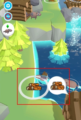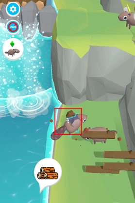 2、滑动操控海狸,灵活拾起树木,屏幕上的数字一目了然,告诉你已收获多少木材