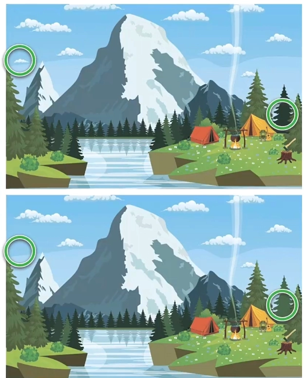 全民找茬2第7关答案:衣服上的花纹、云、杯垫的颜色、树枝、远处的高峰