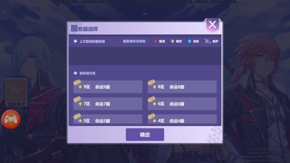 4、之后再选择你心仪的初始角色,点击确定按钮;