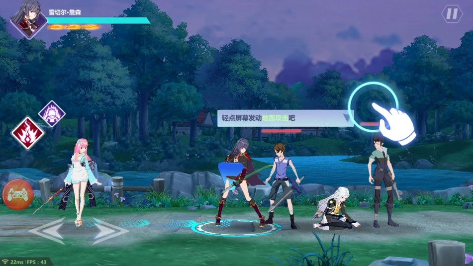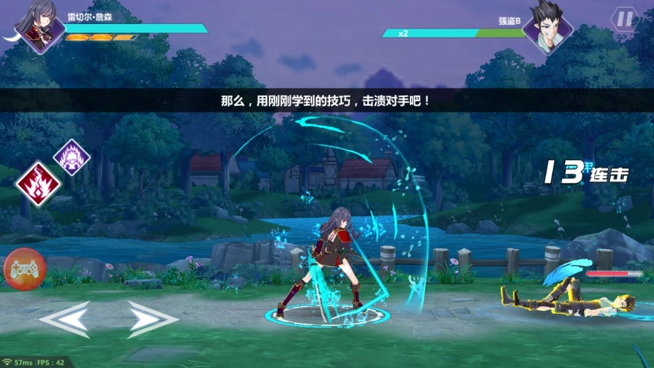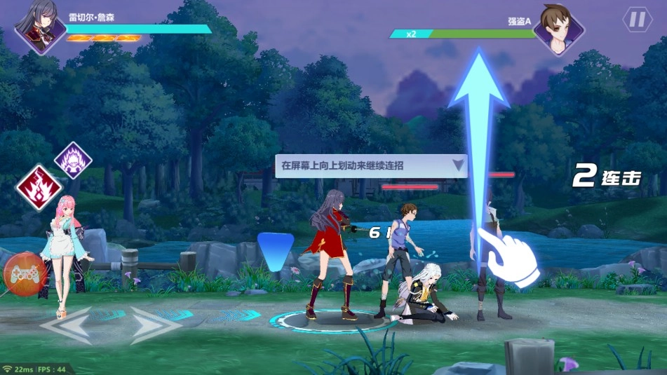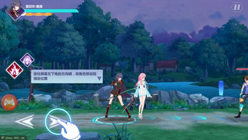 6、进入到战斗页面,按住屏幕左下方的方向键,控制角色移动到指定位置;