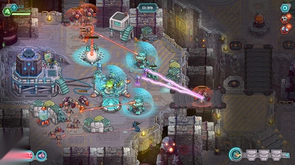 钢铁战队是一款有意思的即时战略游戏,它与王国保卫战的故事处于同一个世界观下,所以两者之间会存在一些关联和相似之处。在这款游戏中,玩家需要指挥装备着高科技武器的钢铁战队,既要守护好己方阵地,又要主动向敌方发起进攻。钢铁战队的玩法融合了进攻与防御,不像王国保卫战那样以单纯防守为主,如果在游戏里只防守不进攻,很容易被敌人逐渐消耗而失败。