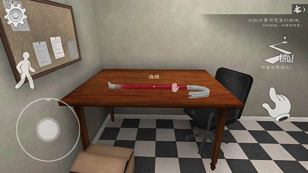 2、然后就可以进入到游戏中,刚开始的话,需要收集桌子上面的撬棍。