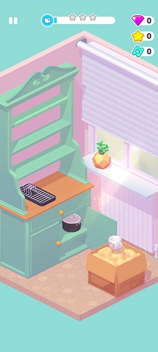 1、游戏启动后,玩家得把房间里的物品整理整洁,装入箱子中收纳打包好。
