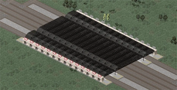 5、雨棚搭建好后需要建设站房,一般的火车站侧式站房16格左右就够了,一侧放置两组(也就是宽度为两格)。大型火车站的侧式站房可以放置三组。高架站房由于没有相关的插件,比较难建。一般是用国道(离地两格)充当高架站房,效果还不错。