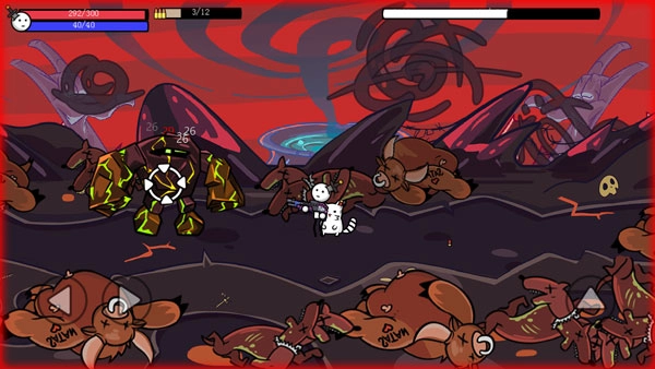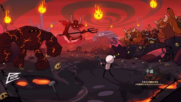 2、你的身边有一堆恶魔、蛮牛、火球等奇奇怪怪的生物向你进攻。
