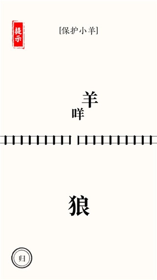 3、我们进入游戏后就能看有一个羊、一个狼和中间有个缺口的围栏。
