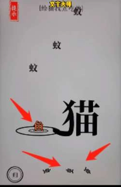 2、点击上方的“蚊”们,它们会从空中掉下,并分解成“文”字与“虫”字。
