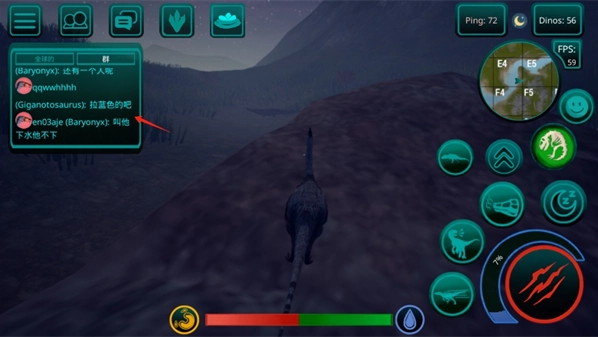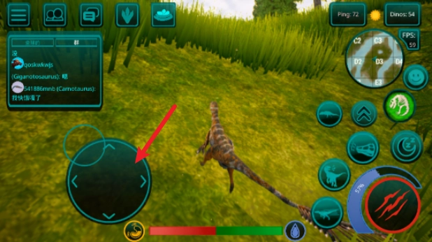 3、接着就正式进入场景了,通过左侧摇杆控制恐龙移动。