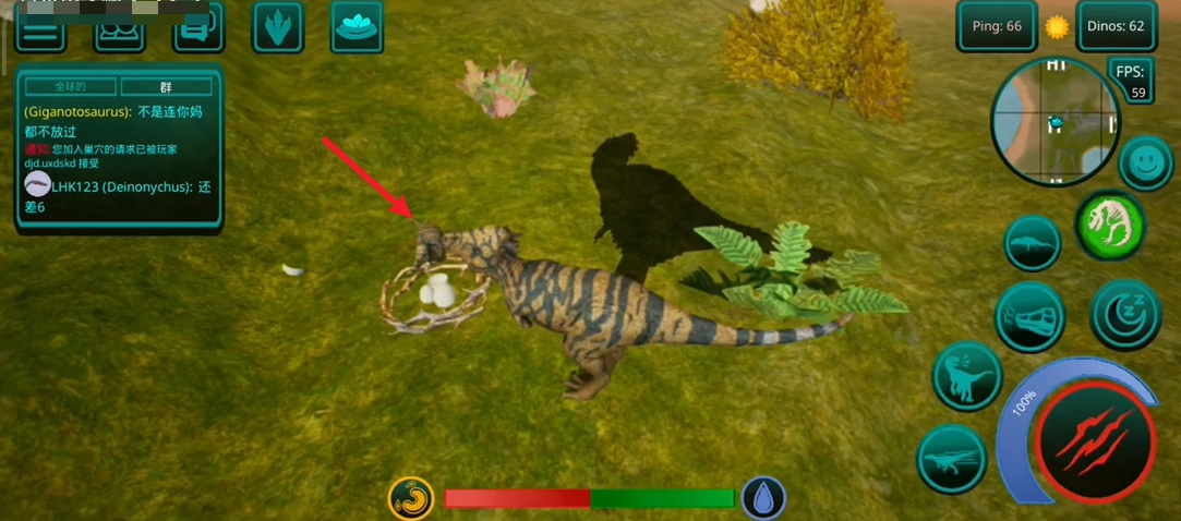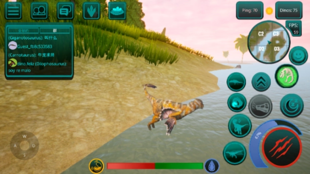 1、游戏中有着十分完善的成长系统,玩家需要通过不断的寻找资源来让恐龙成长,让自己有实力立足在恐龙世界中。