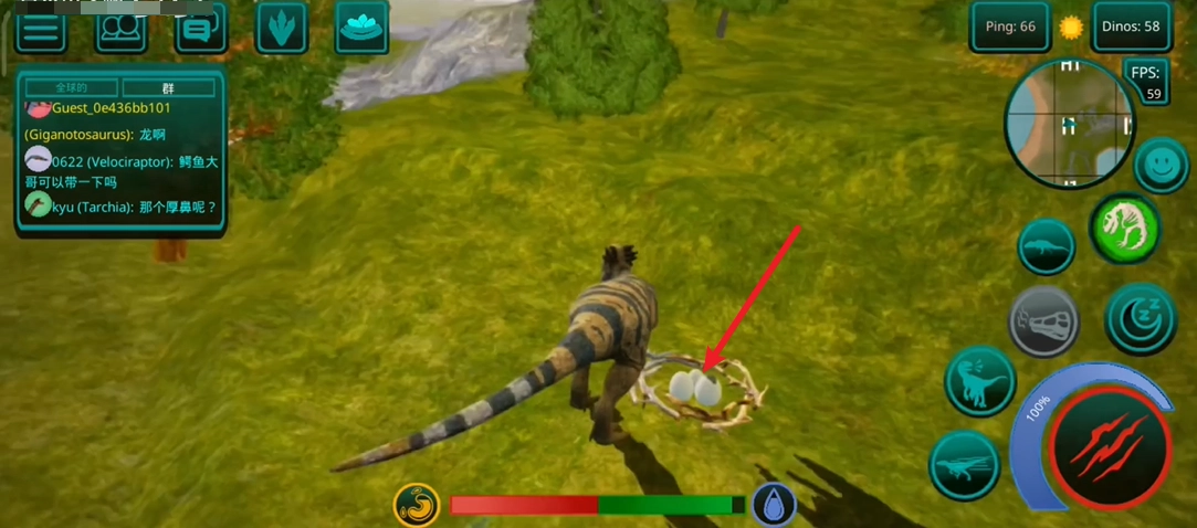 2、我们以肿头龙为例,首先找到有水源有食物的地方趴窝,小龙出来状态低,容易饿死渴死。