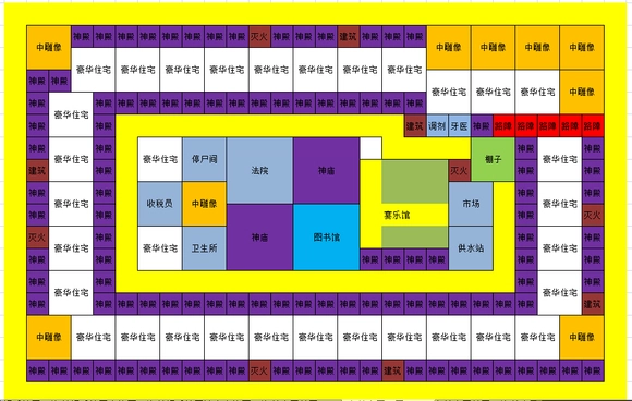 3、 做完这些就得赶紧建神庙,神殿了,神庙是大的那种,要建在居民区,每样一个就好了,神庙出来的人能再居民区转悠就好。多建神殿。看下神殿总管,应该有神要怒了。记得建哦