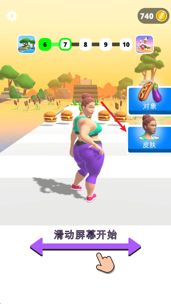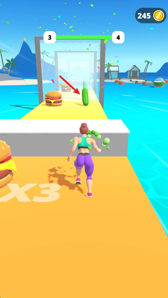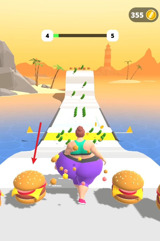 2、拾取场景中的绿色食物,我们就能让身形变瘦。