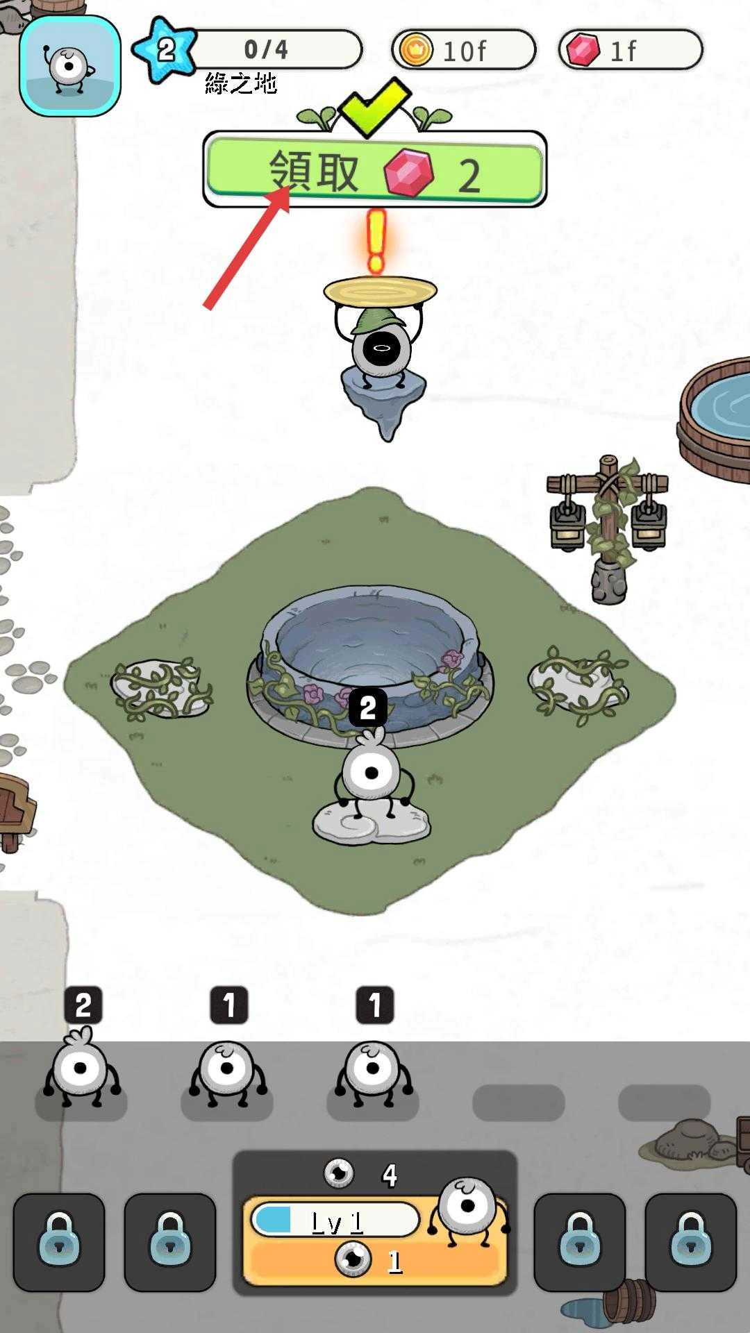 1、界面上方设有领取2的绿色按钮,点击此按钮即可获得2个粉色宝石,通过积攒这类宝石资源,能为后续的游戏操作提供支持。