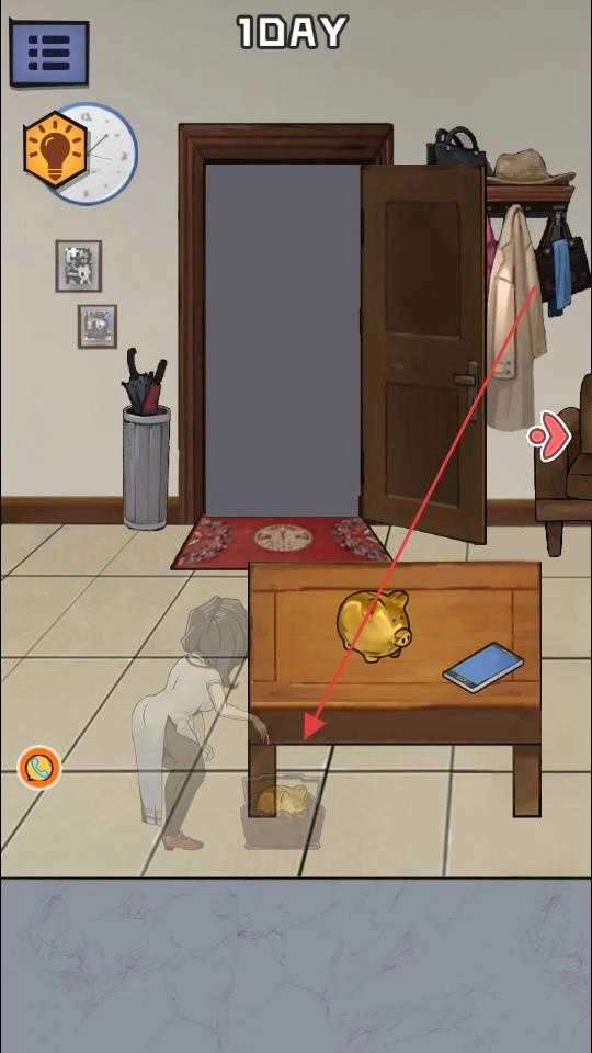 4、完成桌子下方物品的互动后,游戏画面会发生变化,此时点击房间里衣架附近的区域,就能触发后续的游戏情节,让游戏按照设定好的流程继续进行