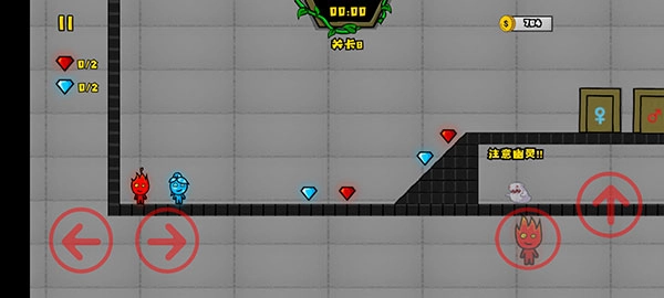 游戏中的水滴角色不能接触火池,火焰角色不能掉入水池,这一设定增加了游戏的挑战性。