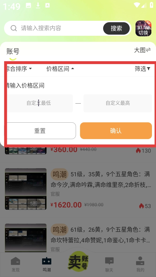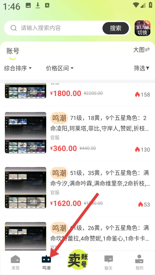 2、这里任意选择一款游戏,这里以“鸣潮”游戏为例,根据需求,确定好需要的游戏账号。