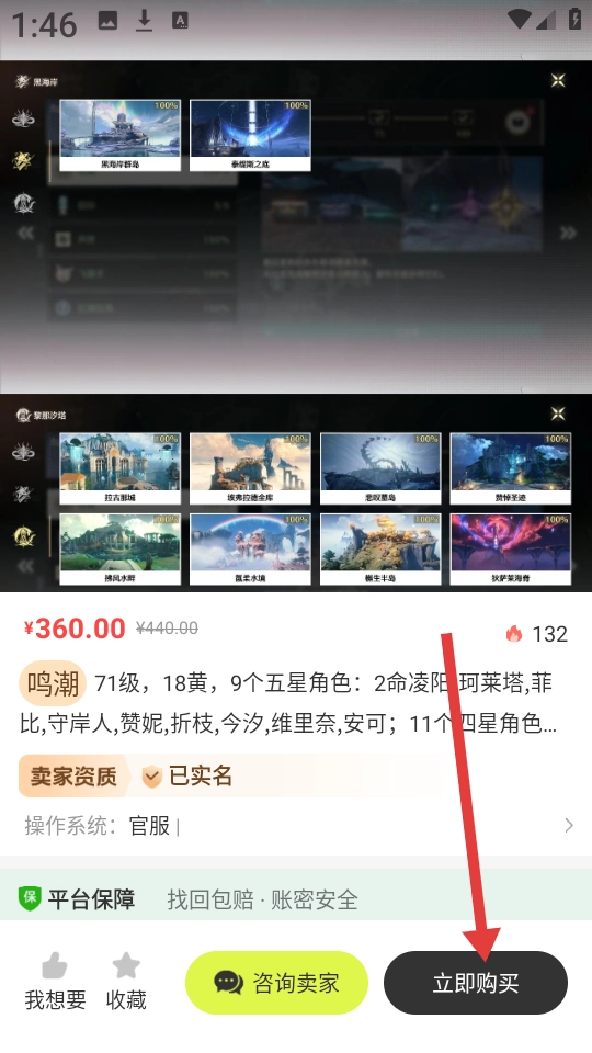 买家与卖家沟通进行验号,查看账号是否与描述相符,建议在订单详情查看平台提供的验号注意事项。