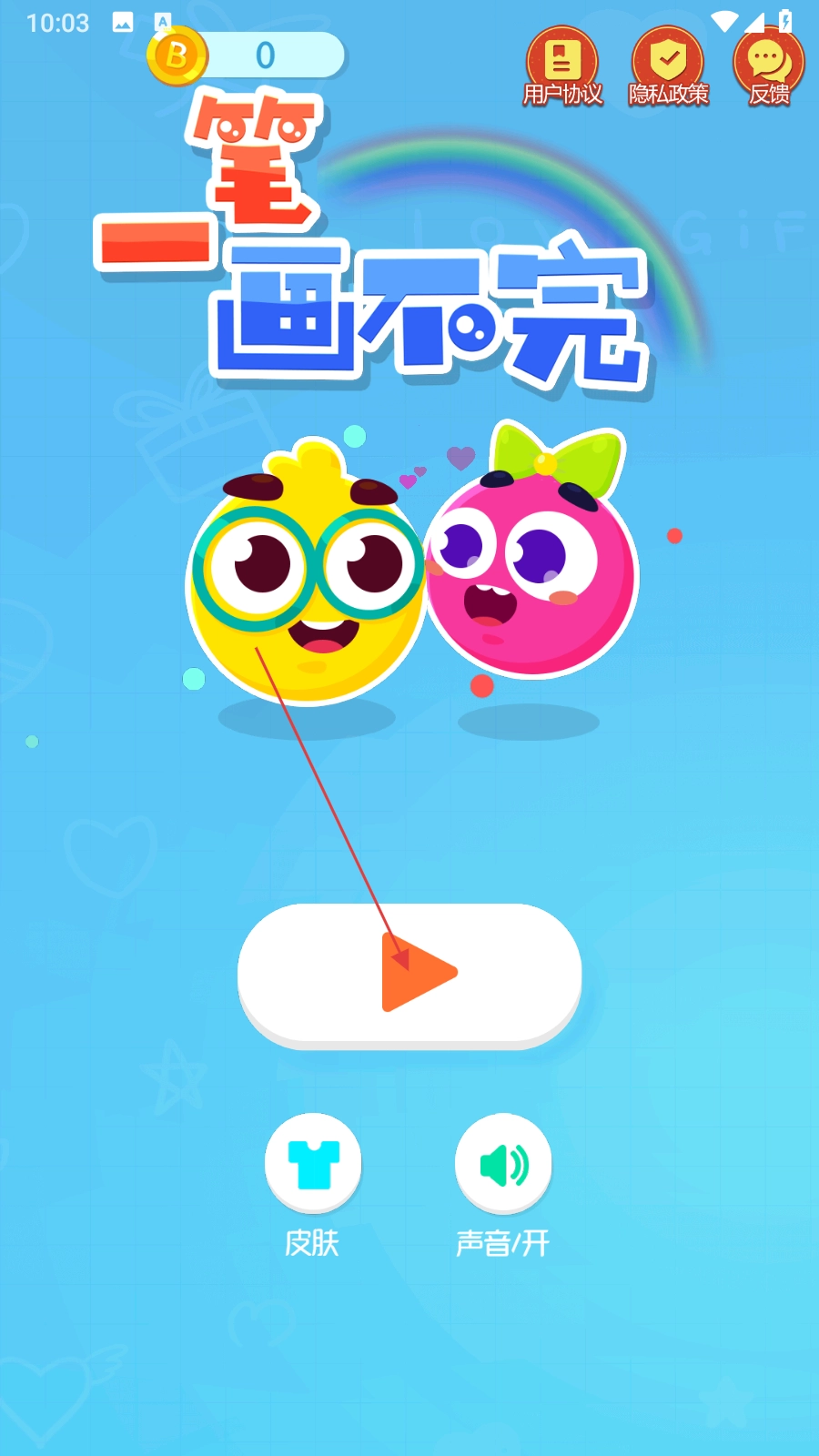1、进入一笔画不完游戏,点击播放按钮开始。