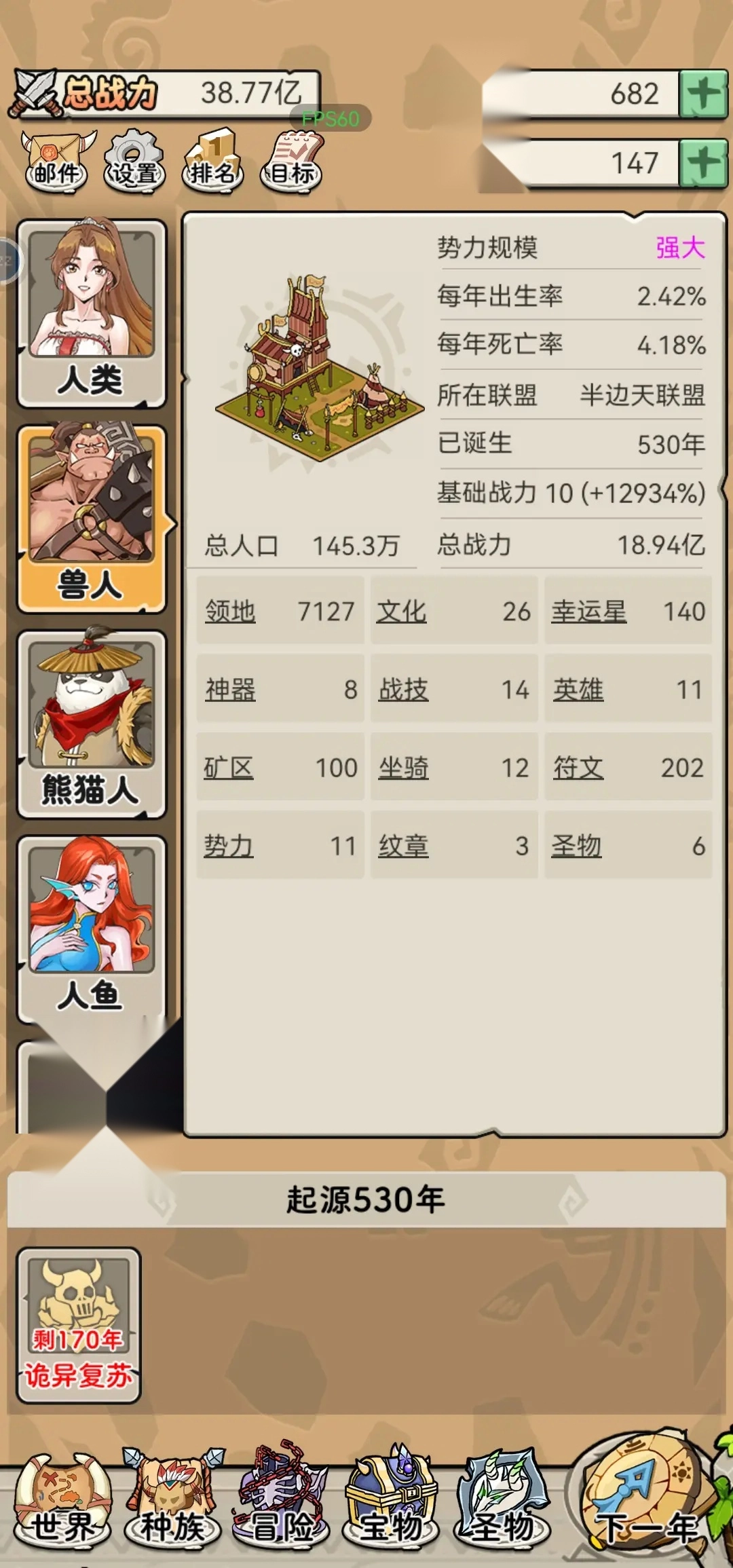 扩张版图长期核心策略,通过扩张版图增加出生率和死亡率的城市,从而实现长期战力提升。预计每年可提升1.04倍战力。派对短期提升战力的有效手段,可在需要时重点投入。