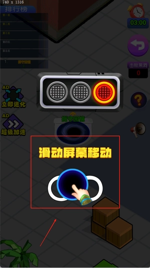 2、注意躲避比自己大的黑洞或障碍物,一旦被吸入就会直接失败,必须灵活走位观察周围情况寻找安全路径继续发育。