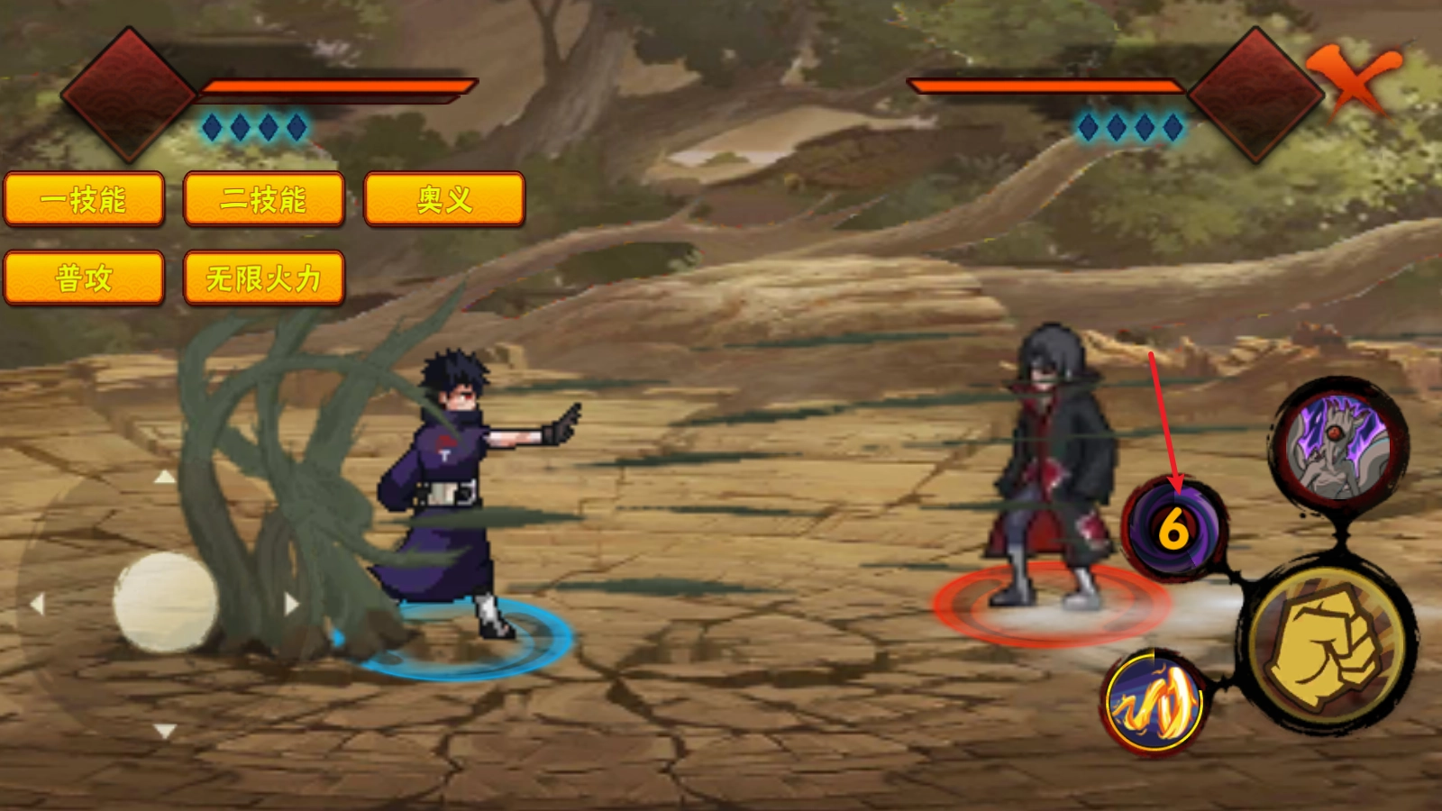 6、不同的忍者也有着特色的机制,例如带土的完美虚化,在对手攻击你的时候开启神威即可触发。