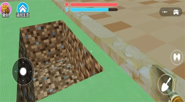 1、点击屏幕操控铲子向下挖掘,通过滑动切换挖掘方向,探索横向与纵向的地下空间。