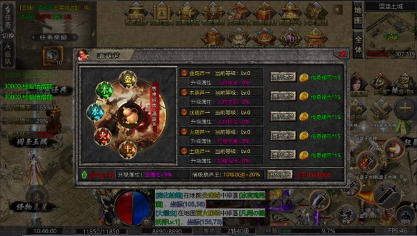1、酒葫芦:消耗传奇硬币可提升5种属性各异的葫芦,每种葫芦分别对应不同属性。消耗元宝还能提升葫芦王,进而获得全属性加成!
