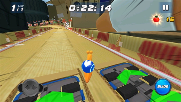 3、控制蜗牛及时的左右转弯,还能收集里面的番茄。