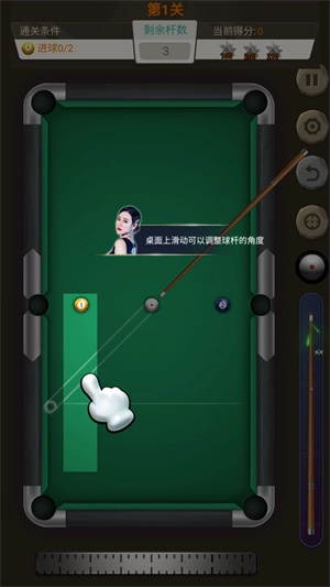 5、在桌面上滑动可以调整球杆角度。