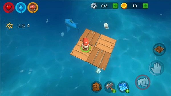 生存挑战:管理好自己的饥饿和口渴,同时对抗鲨鱼的攻击。