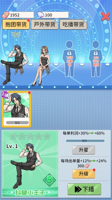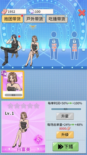 3、玩家和主播都有升级系统,升级级别可以解锁更多功能和产品,增加收入,这是非常有意思的模拟游戏。