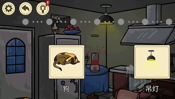 2、然后打开水龙头,将垃圾桶推倒在地,点击陶瓷刀,再点击开关打开通风口开关,最后点击吊灯即可通关。
