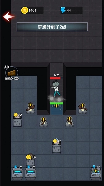 3、你也可以在宿舍里面建造更多的炮台来对抗梦魔的入侵。