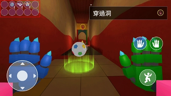 2、这里以玩具工厂为例,游戏的操作十分简单,左侧用于控制人物移动,右侧则负责控制机械手和跳跃。