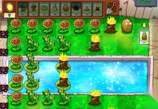 1:经济作物向日葵,水上必须放莲蓬,水路最后4格不会突然冒出僵尸,如果水上有钢帽子僵尸,此时你水路火力还薄弱,可以用墙国挡,也可以用25YG的海藻消灭。