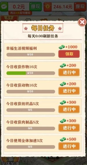 每天会有不少任务,像收获10次作物、收获10次动物之类的,只要完成这些任务,就可以去领取对应的奖励了。