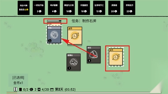 4、在游戏中,玩家可以通过拖拽的方式合成不同的道具。对于相同的村民,进食等操作在不同难度下所需时间会有所不同,具体操作时间会在卡牌上的白色条形显示。