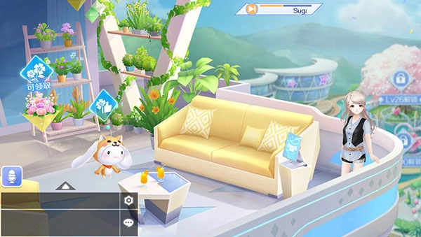 1、首先来到主界面,接着来到阳台,直接打开邮箱,当然也能去查看自己的送花与点赞,记住了,这个后面的花架能够领取鲜花,可以赠送给自己的好友,还可以点击后面的花架,来到花园种植鲜花。