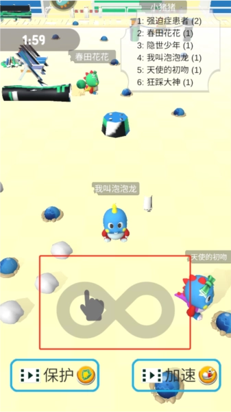 1、好海滨泡泡龙之后进入游戏,游戏内画8字控制角色移动