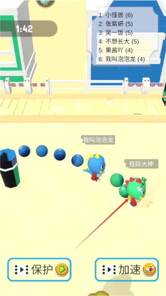 3、可以吃掉比自己长度短的对手,远离比自己长度长的对手哦