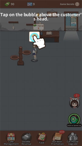 2、通过赚取金币解锁更多稀有猫咪,研发新饮品与甜点,满足不同顾客的口味,提升咖啡馆收益!
