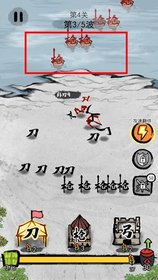 4、会有不同兵种的敌人来袭,要通过合理的排兵布阵打败它们