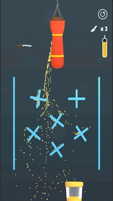 3、玩法很轻松,用刀刺穿沙袋!将沙子装满桶并通过水平仪。