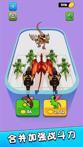 操作流畅,上手容易:游戏的操作界面简洁直观,即使是初次接触这类游戏的玩家也能迅速掌握玩法。滑动屏幕融合恐龙的过程十分顺畅,没有延迟或卡顿的现象发生,让玩家能够专注于策略规划而非操作技巧。