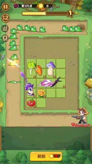 1、每个关卡都设计有不同的怪物等待玩家消灭。各种蔬菜可以用来抵抗怪物。