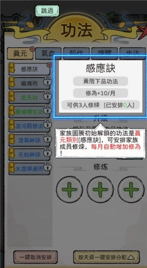 3、再去选择一个合适的功法,这样就能全面提升角色修为。