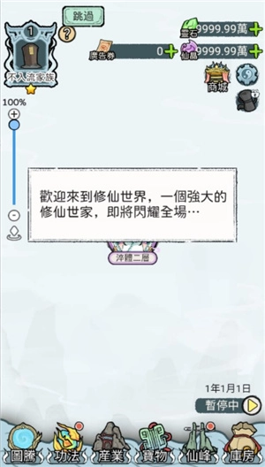 《开宗立派模拟器》是一款文字题材的放置修仙游戏。在游戏中,玩家将化身为修仙家族的族长,需一步步增强家族成员的实力。每日都有诸多任务亟待完成,像开垦灵田、驯服凶兽、提升功法等级等。此外,玩家可随时开启挂机功能,即便离线,家族成员的修为也能持续增长。