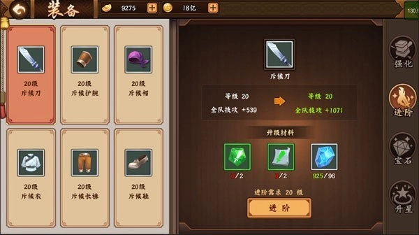 装备的进阶可以给装备获得更高的强化空间。进阶需要消耗装备原石和装备图纸,以及进阶石三种游戏资源。