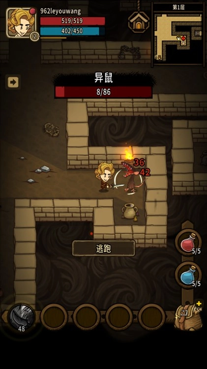 使用虚拟摇杆灵活操控角色移动,击败沿途遇到的各类怪物获取经验值
